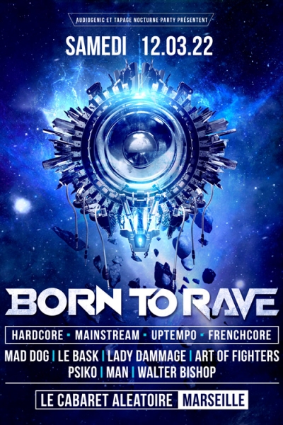Born To Rave fait son grand comeback le samedi 12 mars 2022 à Marseille pour une nuit placée sous le signe de la fête ! Une soirée chargée en BPMs en perspective ! Ready to party Hard ?